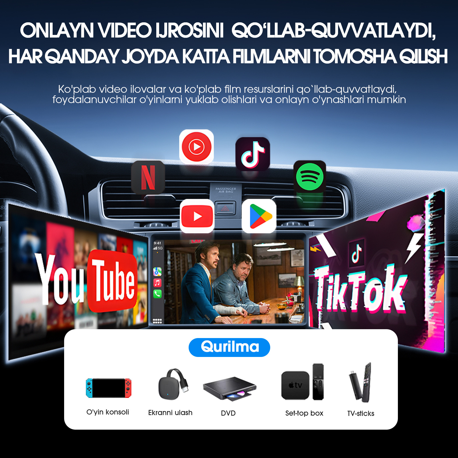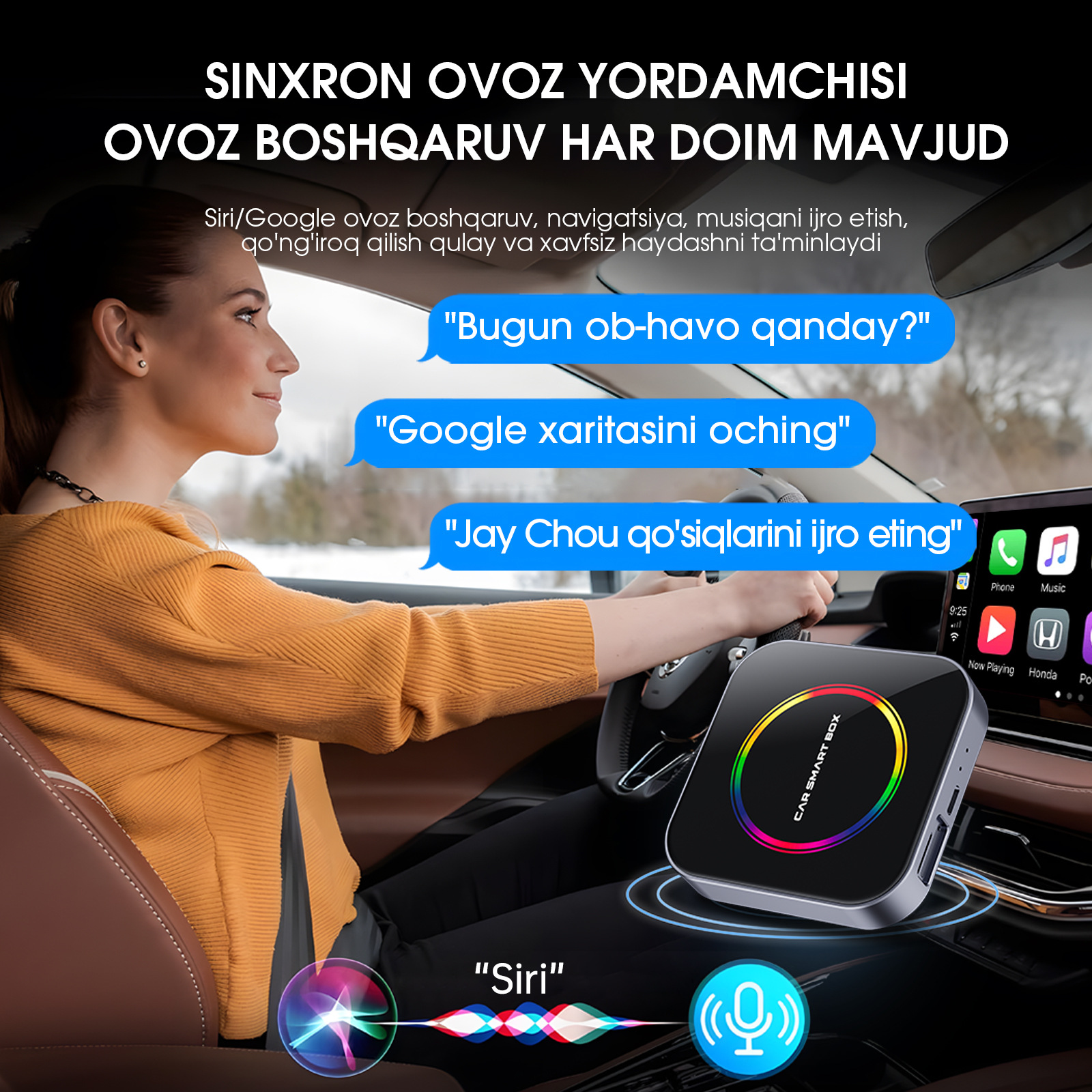 AI BOX Kabelsoz ulanish iOS/Android toʻliq mos CarPlay
